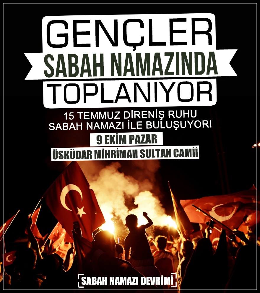 Bu düstur ile 2 sene önce yola çıkan ve her ay Üsküdar Mihrimah Sultan Camii’nde bir araya gelen gençlerin başlatmış olduğu, “Sabah Namazı Devrimi” ismini verdikleri buluşmalar başlıyor. İlk defa İstanbul’da başlayan etkinlik, kısa sürede birçok şehre yayılıp, eş zamanlı 45 ilde geniş katılım ile gerçekleşti. Sonraları birçok kurum kuruluş tarafından örnek alınıp farklı şehirlerde gerçekleştirilmeye başlandı.