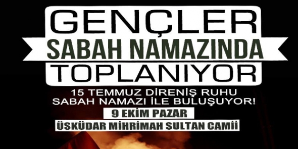 Başta gençler olmak üzere tüm halkın davetli olduğu Sabah Namazı Buluşması 9 Ekim Pazar günü Mihrimah Sultan Camii’nde başlayacak, tüm gençler davetlidir.