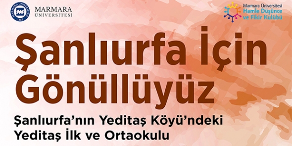 Marmara Üniversitesi Hamle Düşünce ve Fikir Kulübü olarak bir tebessüm hamlesi daha yapıyoruz. Kulüp olarak Şanlıurfa`nın Siverek ilçesinin Yeditaş köyündeki Yeditaş İlköğretim Okulu`na ve öğrencilerine ihtiyaçları doğrultusunda destek vermek için bir proje başlattık.