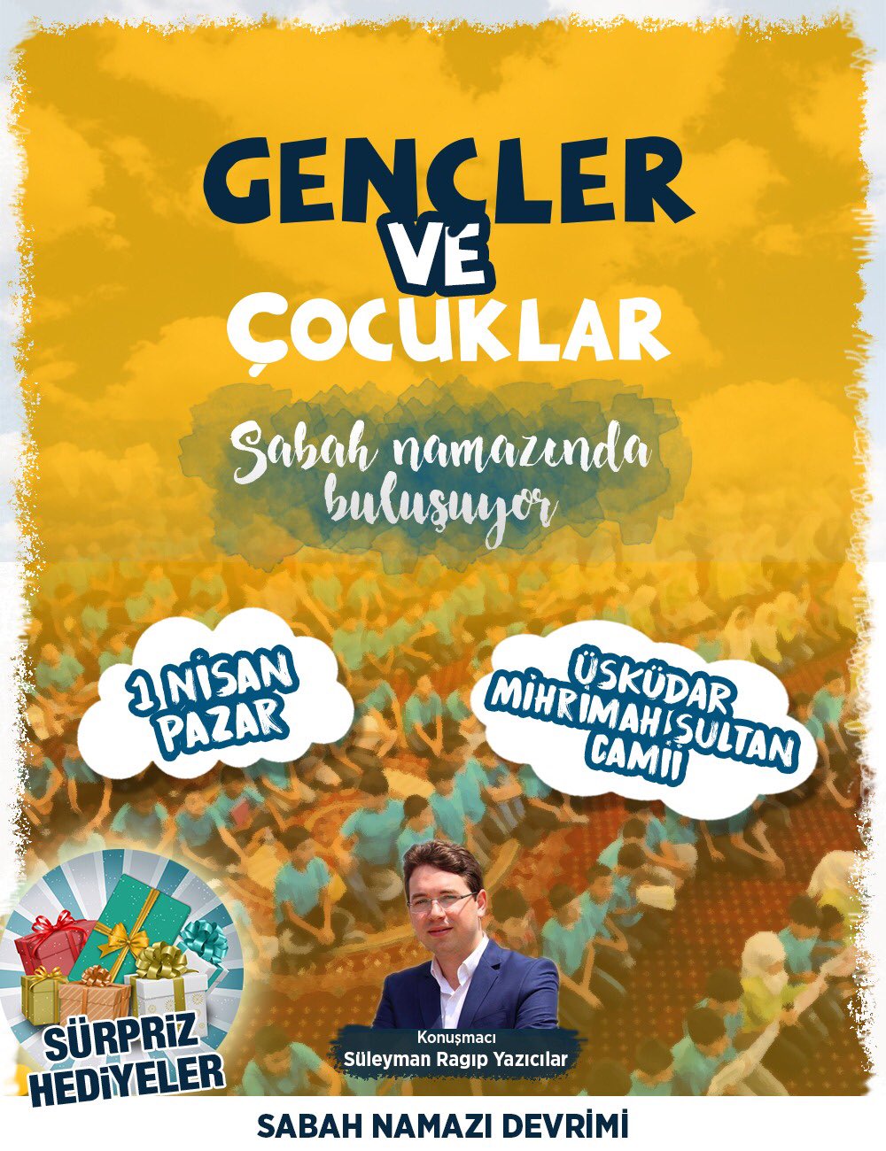 GENÇ Dergisi Editörü Süleyman Ragıp Yazıcılar`ın katılımıyla Sabah Namazı Devrimi programı gerçekleşecek. Bu buluşmanın özelliği ise gençler gibi çocukların da programda yer alacak olmaları.