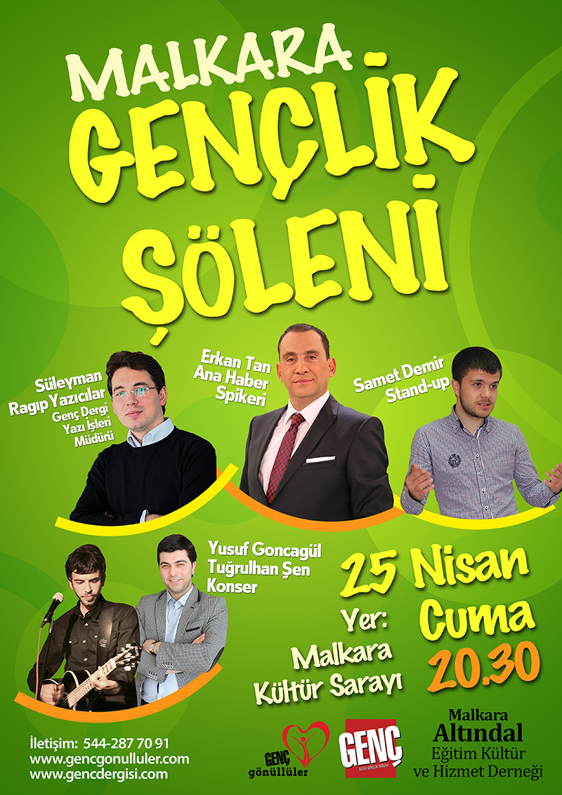 Şölenimiz, Malkara Altındal Eğitim ve Kültür Derneğinin katkılarıyla 25 Nisan Cuma günü Malkara Kültür Sarayı`nda gerçekleşecektir. Tüm genç gönüllüleri şölenimize bekleriz.