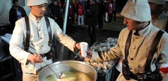 Yürüyüş başlamadan önce Kızılay ve 2’nci Kolordu Komutanlığı tarafından hazırlanan ve tümü şehit olan 57’nci Alay askerlerinin son yediği yemek ’kırık buğday çorbası’ katılımcılara dağıtıldı.