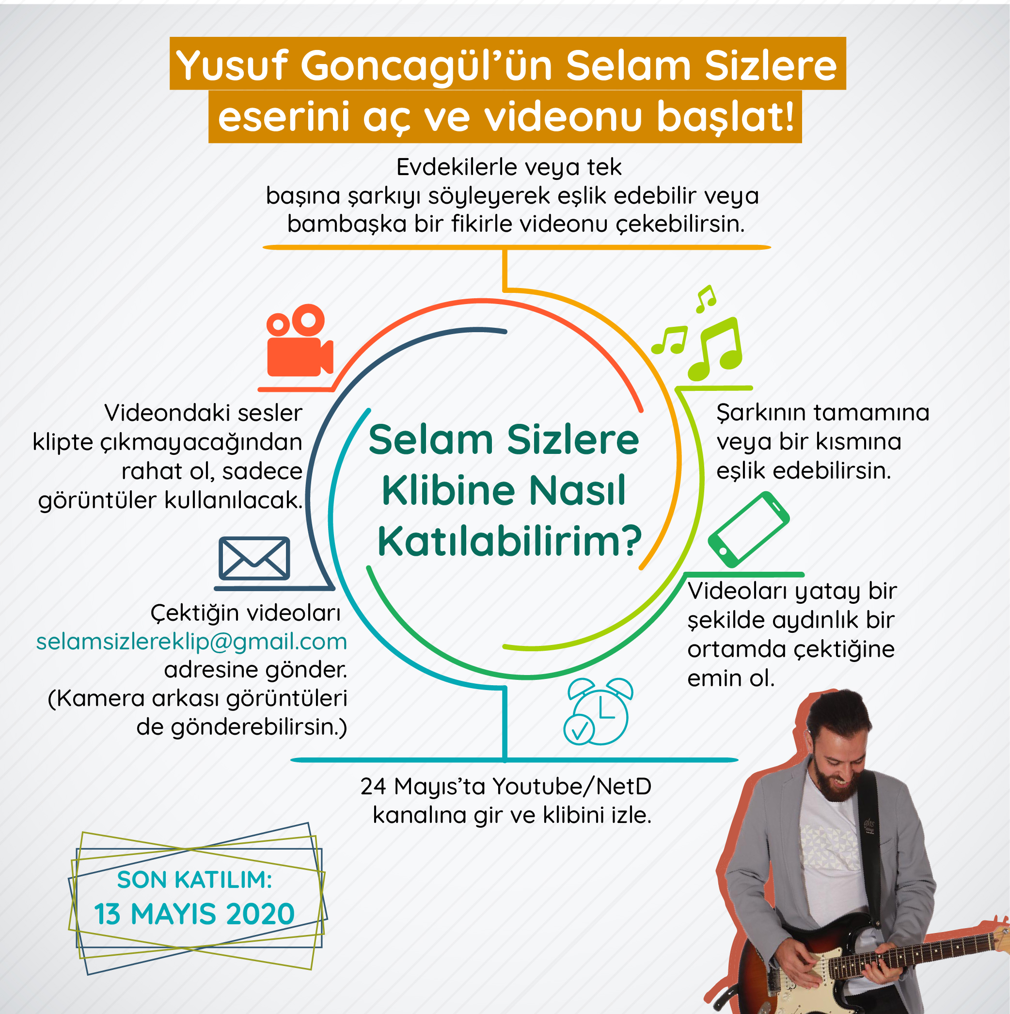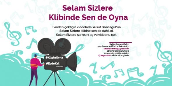 Evde kalarak sosyal mesafeyi koruduğumuz bugünlerde kendi kameramız ve klip ortamımızla, Selam Sizlere klibinde yer alabiliriz. Tüm müzik platformlarda bulunan Selam Sizlere eserini açıp, videomuzun kayıt tuşuna basmamız ve şarkıya eşlik etmemiz yeterli.