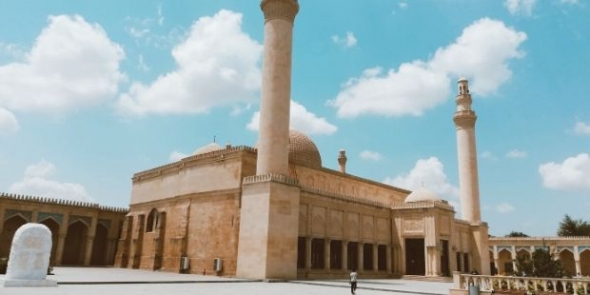 Bakü`den ayrıldıktan yaklaşık üç saat sonra Şamahı`ya vardık. Burada bizleri şehrin girişinde yol üstünde muazzam bir görünüme sahip olan Şamahı Cuma Camisi karşıladı. Tarih ve kültür mirası olarak Azerbaycan için önemli bir yere sahip olan cami, çeşitli doğal afetler ve son olarak Ermeni çetelerince zarar verilmesi nedeniyle yakın dönemde yenileme çalışmaları yaşamış. Bu nedenle uzun bir süre kapalı kalmıştır. Yenileme çalışmaları bittikten sonra birçok din adamının katılımıyla Azerbaycan Cumhurbaşkanı İlham Aliyev tarafından resmi bir törenle açılışı gerçekleşmiştir. Tarihi 743 yılına kadar uzanan cami, bir zamanlar İslam`ın kabul merkezi olması münasebetiyle oldukça önemlidir. Zira Hazar Devleti`nden bazı yöneticilerin burada Müslüman oldukları belirtilmektedir. Caminin Sovyetler döneminde ayakta olmasına rağmen ibadete kapalı olması rejimin baskıcı politikasının bir göstergesidir. Fakat 1980`li yıllarda artık rejimin baskısının azaldığı bir zamanda cami tekrar ibadete açılır. İbadete açıldıktan sonra çokça zarar görmüş olan camiye o zamanın Azerbaycan cumhurbaşkanı Haydar Aliyev tarafından bir yenilemeye gidilir. Fakat caminin yenileme çalışmalarının daha geniş bir biçimde ele alındığı tarih 2009`lardır. Geçirdiği son yenileme çalışmalarıyla birlikte sadece bir cami olarak değil adeta bir kompleks olarak faaliyet vermiştir. Cami mimari olarak çok güzel bir mimariye sahiptir. Sarı kesme taşlı bir yapı olan caminin ön tarafında iki tane minaresi vardır ve bu iki minarenin her birinin ikişer tane şerefesi bulunur. Geniş bir avluya sahip olan caminin iç mimarisi harikuladedir. Son derece büyük bir ince işçiliğin hâkim olduğu iç mimarisi büyük bir görsel şölen sunmak birlikte yine Türk İslam mimarisinin muhteşemliğini göz önüne koyuyordu.